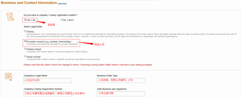 4、填寫(xiě)公司及聯(lián)系信息(選擇公司帶limited結(jié)尾的,同時(shí)填寫(xiě)香港公司商業(yè)登記證上的信息,信息要一致)