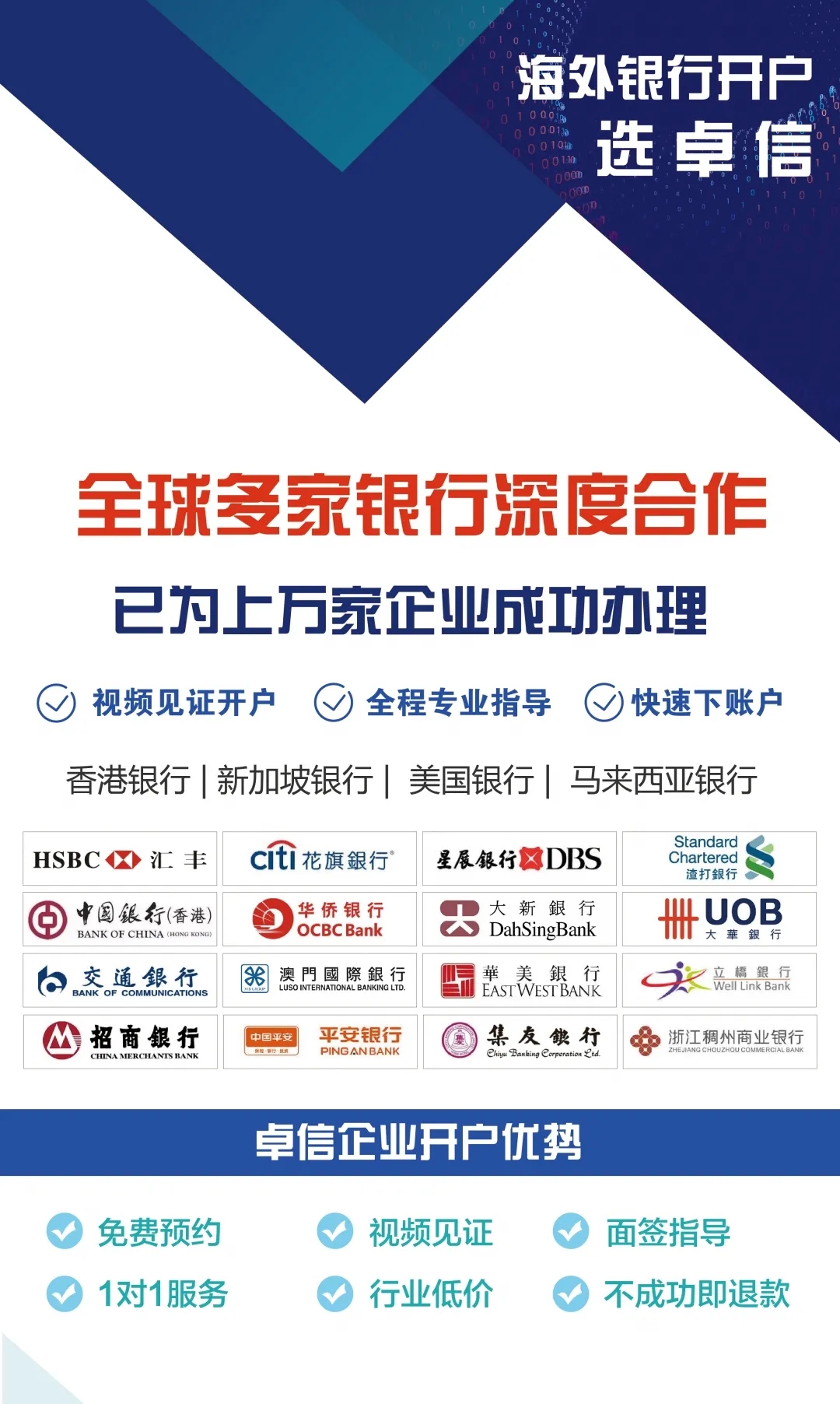 卓信擁有多年開(kāi)戶經(jīng)驗(yàn),與多家銀行有良好合作關(guān)系,為客戶提供免費(fèi)開(kāi)戶預(yù)約服務(wù),國(guó)內(nèi)視頻見(jiàn)證開(kāi)戶,全程保駕護(hù)航,歡迎隨時(shí)聯(lián)系!