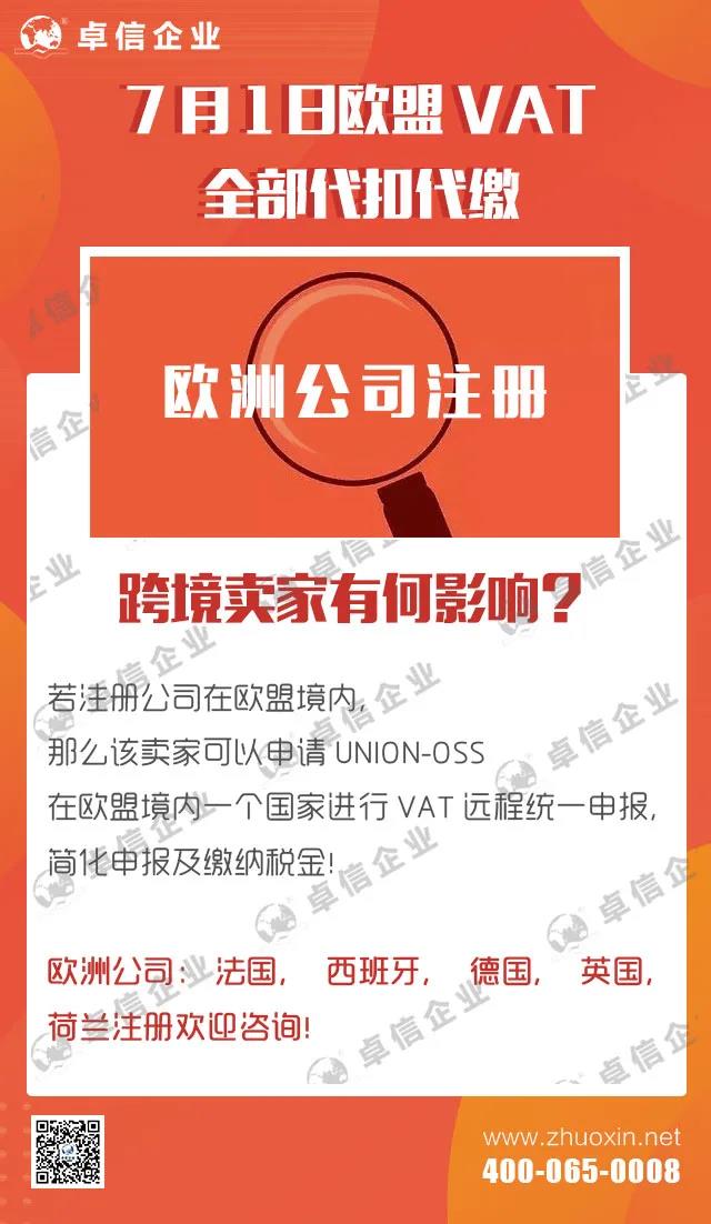 注冊公司在歐盟境內的賣家可以申請UNION-oss,在歐盟境內一個國家進行VAT遠程統(tǒng)一申報,簡化申報及繳納稅金!