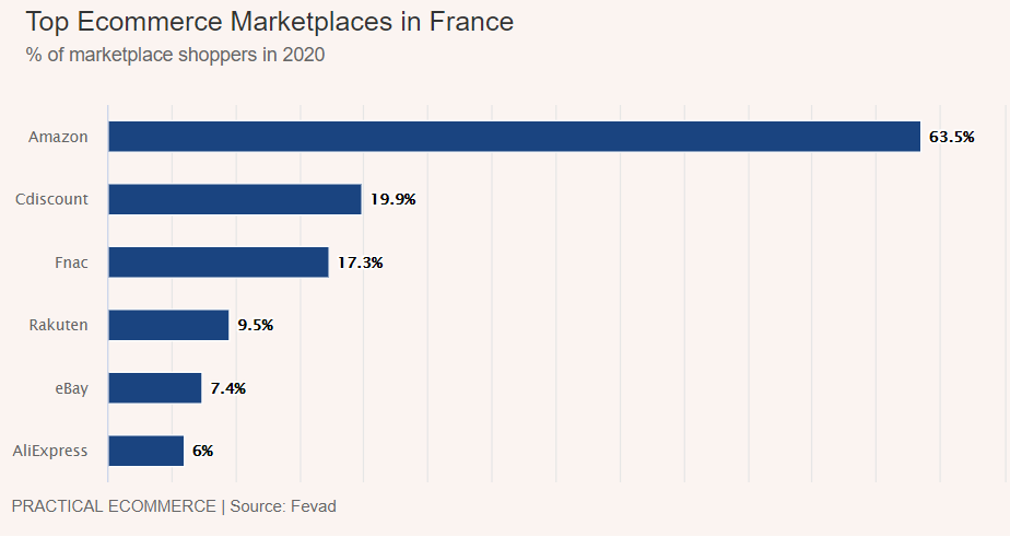 Fnac是另一個(gè)受歡迎的法國(guó)本土市場(chǎng)。它代表了法國(guó)市場(chǎng)銷售額的17.3%,同時(shí)也是擁有160家零售店的熱門實(shí)體店。Fnac成立于1954年,于2016年與主要零售商Darty合并。電子商務(wù)現(xiàn)在占合并實(shí)體總銷售額的19%,可提供當(dāng)日送貨服務(wù)。Fnac已將其市場(chǎng)擴(kuò)展到比利時(shí),西班牙,葡萄牙和瑞士。