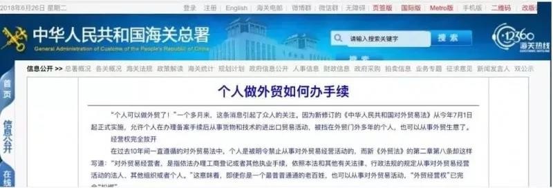 之前中國(guó)海關(guān)總署就發(fā)過(guò)新聞,個(gè)人可以做進(jìn)出口貿(mào)易,如下: