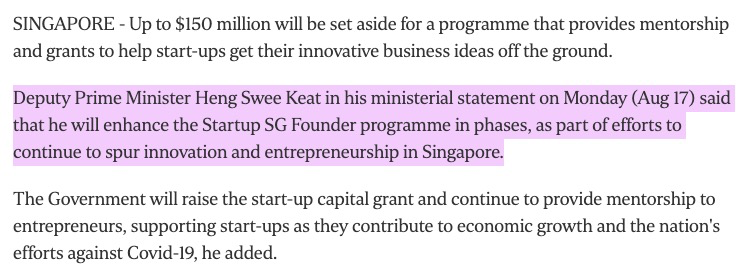 新加坡副總理王瑞杰8月17日在聲明中表示,他將分階段加強(qiáng) "起步新加坡—先鋒計(jì)劃"(Startup SG Founder),作為繼續(xù)刺激新加坡創(chuàng)新和創(chuàng)業(yè)努力的一部分。同時(shí),新加坡政府將提高創(chuàng)業(yè)資本補(bǔ)助金,并繼續(xù)為創(chuàng)業(yè)者提供指導(dǎo),支持初創(chuàng)企業(yè)為經(jīng)濟(jì)增長(zhǎng)和國(guó)家抗擊新冠疫情所作出的貢獻(xiàn)。隨著疫情加速了許多結(jié)構(gòu)性轉(zhuǎn)變,新加坡必須在后疫情世界中做好相應(yīng)的定位,抓住增長(zhǎng)機(jī)遇,繼續(xù)進(jìn)行經(jīng)濟(jì)轉(zhuǎn)型。